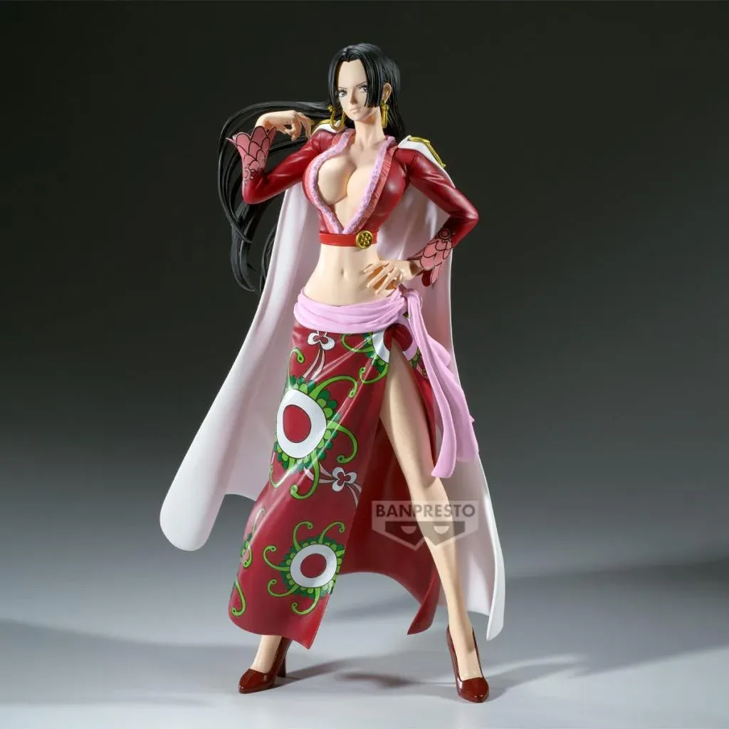 Фігурка Боа Хенкок має висоту близько 28 см, що дозволяє добре роздивитися всі елементи дизайну — від виразних рис обличчя до складок одягу. Акуратне фарбування, плавні лінії та деталізована зачіска роблять модель максимально схожою на оригінальний аніме-образ персонажки. Завдяки стійкій підставці фігурка надійно розміщується на полиці, у вітрині або в колекції фанатської атрибутики.