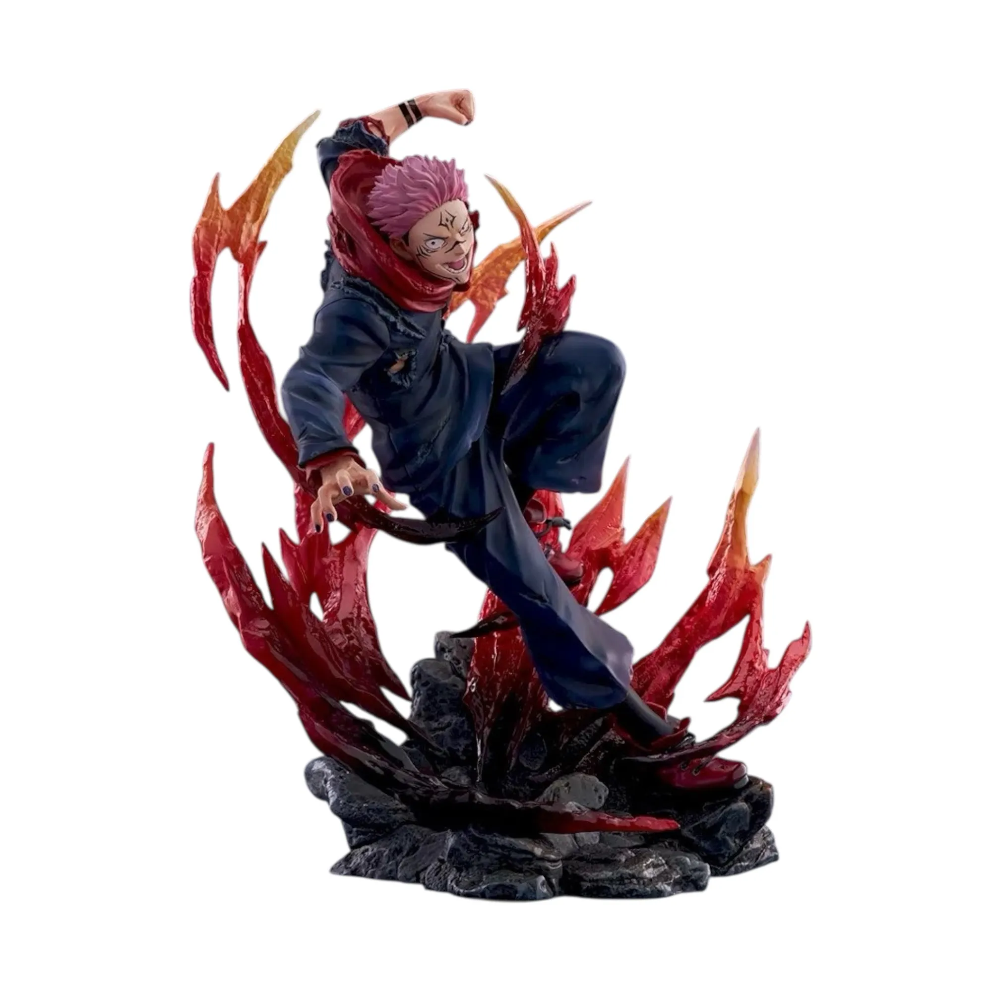 Ця модель демонструє Сукуну у напруженій бойовій сцені, підкреслюючи його домінантну присутність і небезпечну харизму. Поза побудована так, щоб передати рух і силу персонажа, а вираз обличчя точно відображає його холодну впевненість. Завдяки цьому фігурка виглядає максимально живою та емоційно насиченою.