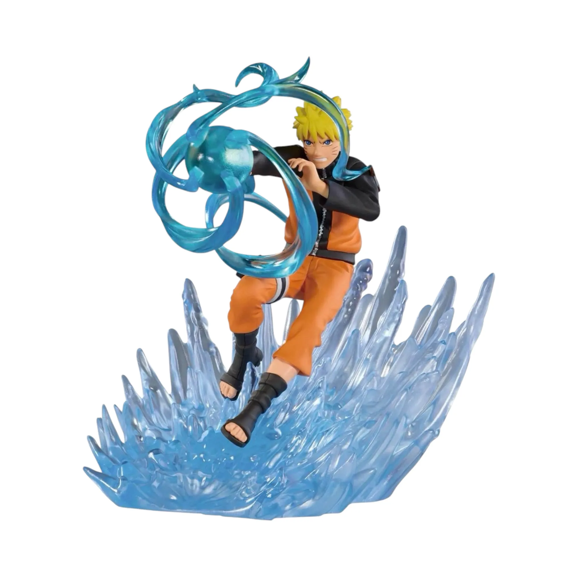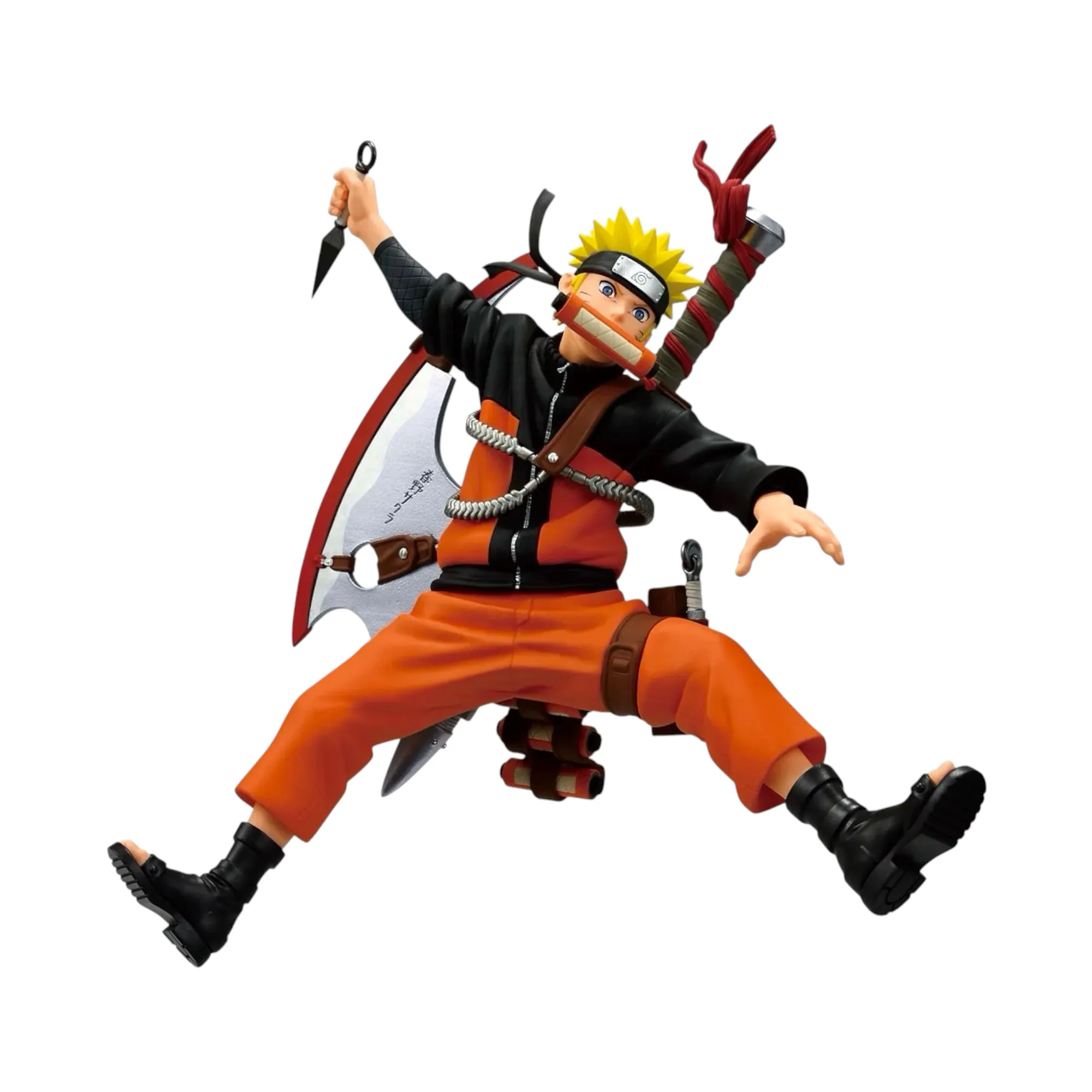 Фігурка вражає кількістю бойових елементів. Наруто тримає сувій у зубах та готовий до атаки кунай у руці, що робить композицію дуже об'ємною.